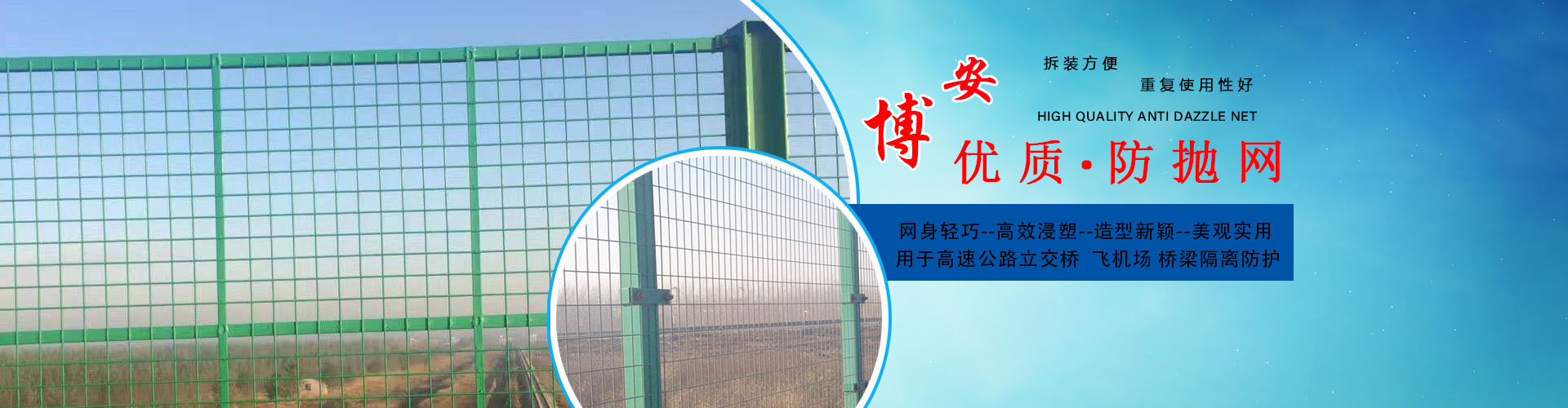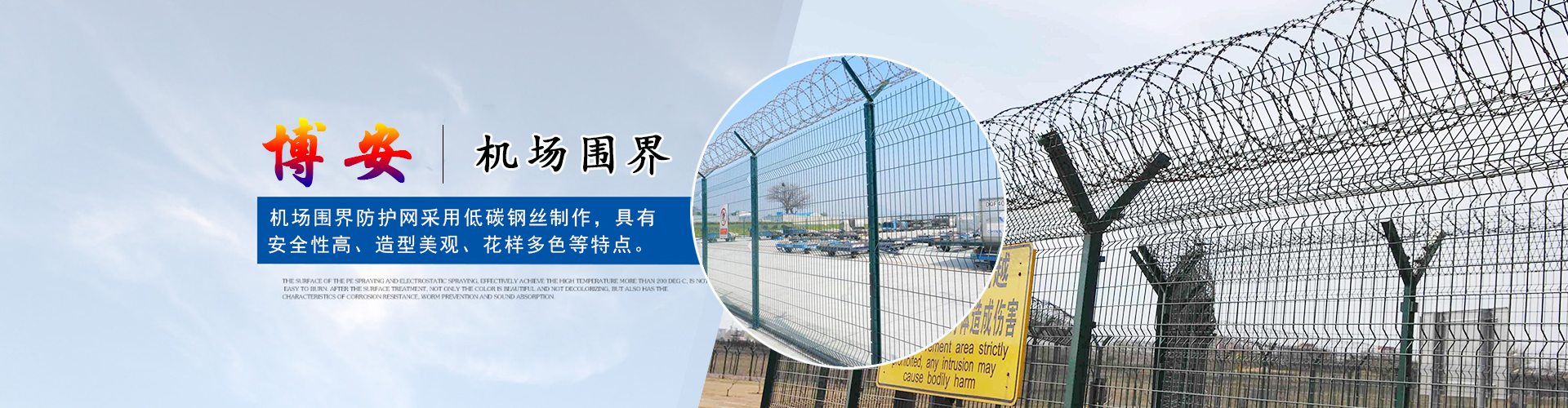 河北博安金屬網(wǎng)欄有限公司,創(chuàng)建于2010年,位于久負(fù)盛名的“中國(guó)絲網(wǎng)之鄉(xiāng)”--河北省安平縣。生產(chǎn)、銷(xiāo)售、安裝:防拋網(wǎng),機(jī)場(chǎng)圍界,復(fù)合立柱,刺鐵絲柵欄,仿聲屏障圍擋及進(jìn)出口業(yè)務(wù)。